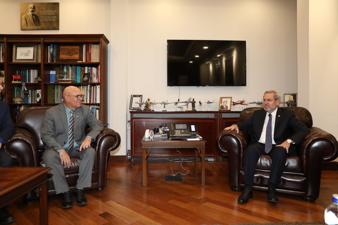 Ankara Üniversitesi Rektör Yardımcıları Prof. Dr. Hatice Bakkaloğlu ve Prof. Dr. Kaan Orhan ile Dış İlişkiler Koordinatörü Prof. Dr. Oğuz Güngör ve Latin Amerika Çalışmaları Uygulama ve Araştırma Merkezi (LAMER) Müdürü Dr. Öğretim Üyesi Zeynep Kayacık’ın da hazır bulunduğu görüşmede, eğitim alanında iş birliklerinin geliştirilmesi ve öğrenci hareketliliğinin artırılmasına yönelik konular değerlendirildi.