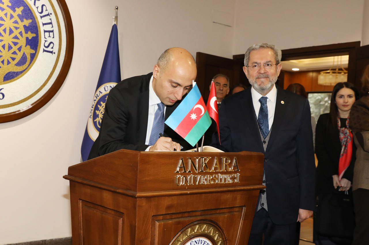 Görüşmenin ardından Bakan Amrullayev Ankara Üniversitesi Şeref Defterini imzaladı.