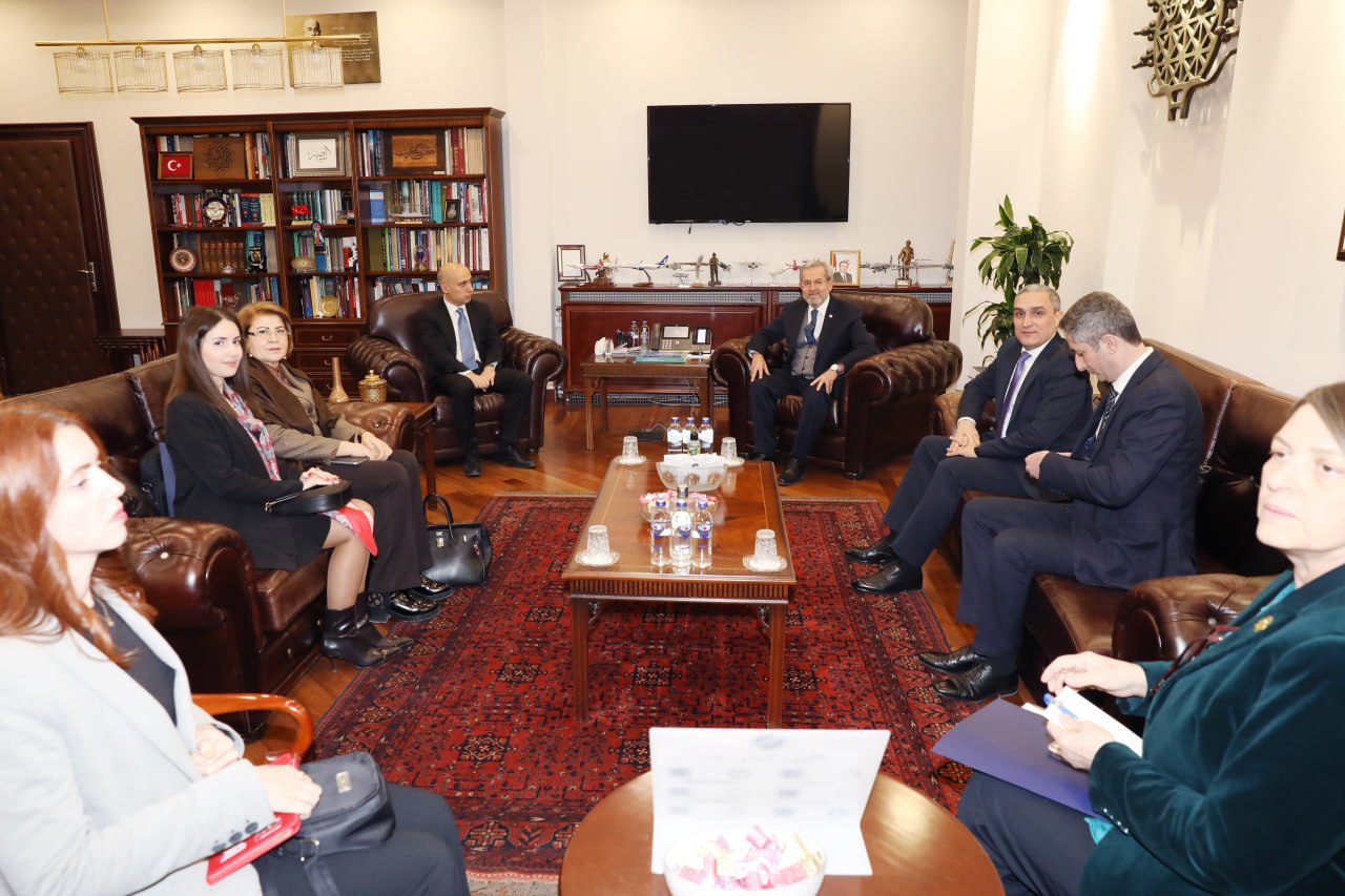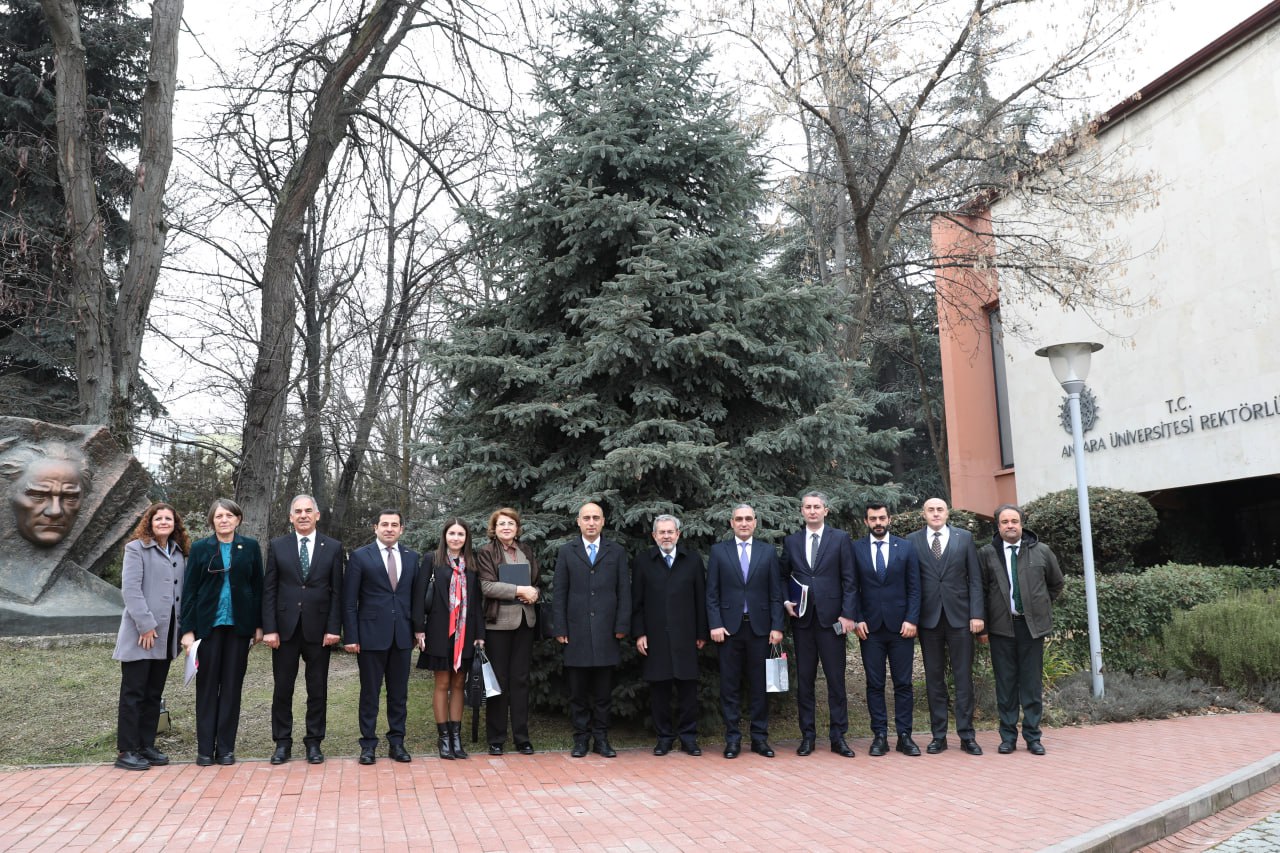 Azerbaycan Bilim ve Eğitim Bakanı Emin Amrullayev, Karabağ Üniversitesi Rektörü Shahin Bayramov, Bilim ve Eğitim Bakanlığı Uluslararası İşbirliği Dairesi Uluslararası Anlaşmalar Sektörü Başkanı Farida Novruzlu, Bilim ve Eğitim Bakanlığı Bilim, Yükseköğretim ve Mesleki Eğitim Dairesi Başkanı Turkhan Suleyman, Azerbaycan Türkiye Büyükelçiliği Müsteşarı Dr. Fuzuli Majidli ve Azerbaycan Ankara Büyükelçiliği Eğitim Müsteşarı Doç. Dr. Necibe Nesibova’dan oluşan heyetle birlikte Ankara Üniversitesi Rektörü Prof. Dr. Necdet Ünüvar’ı ziyaret etti.