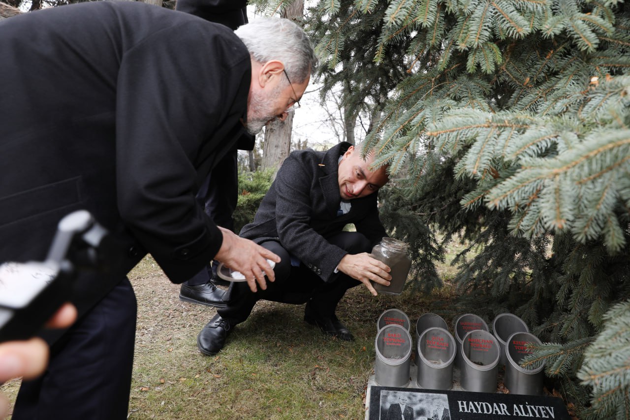 Ardından Rektör Ünüvar ve Bakan Amrullayev, daha önce Azerbaycan’ın farklı şehirlerinden getirilen toprakların da konulduğu mavi ladin ağacının altında oluşturulan özel bölüme Saatlı toprağını bıraktı.