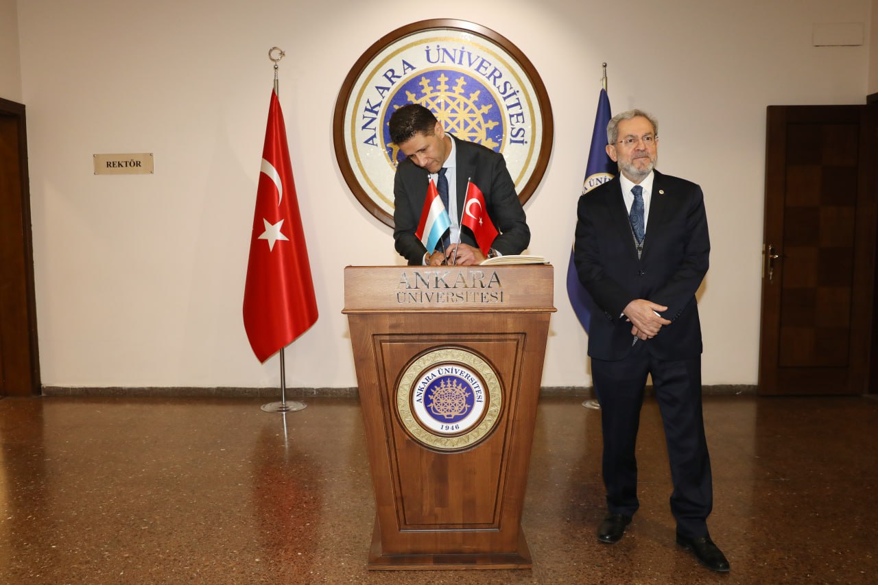 Lüksemburg Büyükelçisi Daniel Da Cruz, Ankara Üniversitesinde gördüğü misafirperverlikten ötürü son derece memnun olduğunu ifade etti. Coğrafi olarak küçük bir ülke olmalarına rağmen Lüksemburg Üniversitesinin büyüyerek sıralamalarda çok önemli noktalara ulaştığını kaydeden Büyükelçi Cruz, tıp başta olmak üzere birçok farklı alanlarda çalışmalar gerçekleştirdiklerini belirtti.