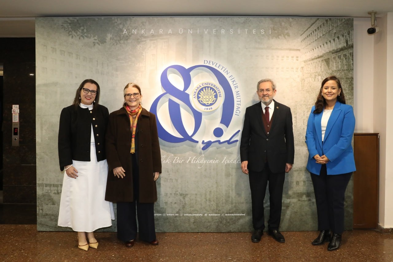Rektör Yardımcıları Prof. Dr. Hatice Bakkaloğlu ve Prof. Dr. Kaan Orhan’ın yanı sıra Dış İlişkiler Koordinatörü Prof. Dr. Oğuz Güngör ve Latin Amerika Çalışmaları Uygulama ve Araştırma Merkezi (LAMER) Müdürü Dr. Öğr. Üyesi Zeynep Kayacık’ın da hazır bulunduğu görüşmede, Ankara Üniversitesi ile Brezilya üniversiteleri arasında eğitim alanındaki iş birliklerinin geliştirilmesine yönelik konular ele alındı.