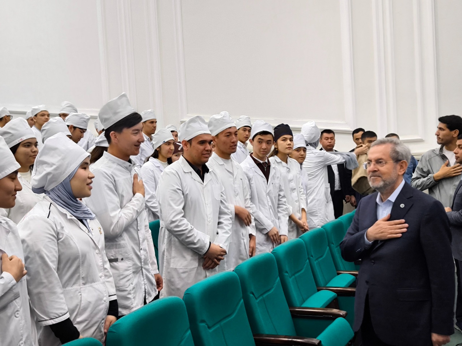 Rektör Ünüvar, daha sonra, geleceğin hekimleri ile bir araya gelerek onlarla tecrübelerini paylaştı. Öğrencilere Türkiye-Özbekistan ilişkilerinin yanı sıra Türk sağlık sisteminden de bahseden Ünüvar, hekimliğin insanlığa en fazla hizmet edilebilecek mesleklerin başında geldiğini ifade etti.